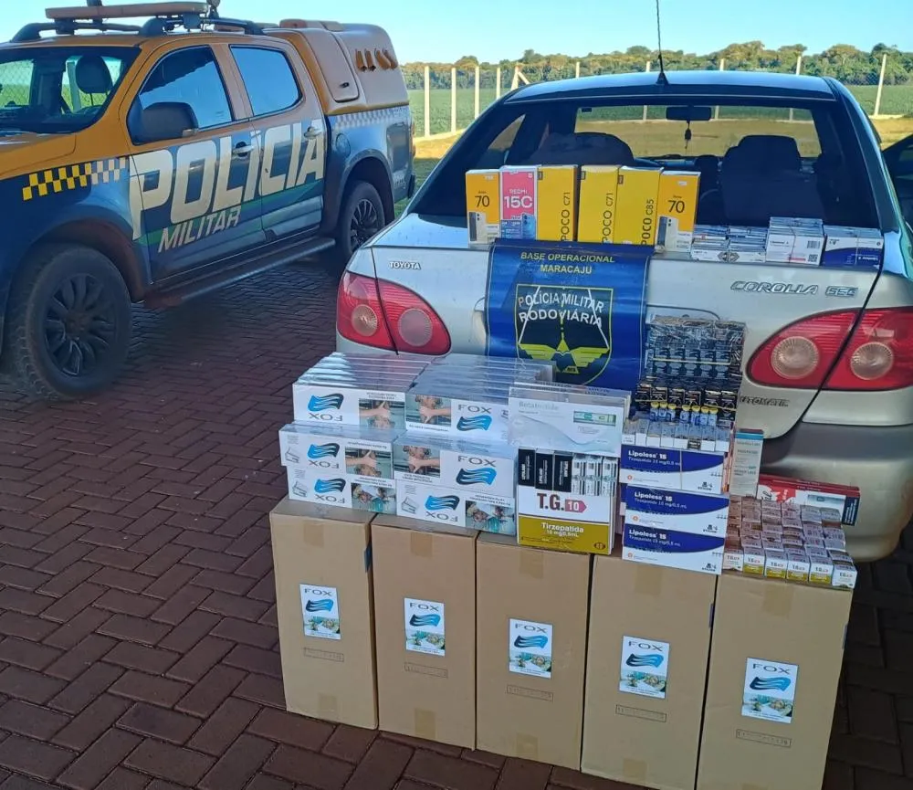 BPMRv apreende cigarros, celulares e grande quantidade de medicamentos irregulares na MS-162
