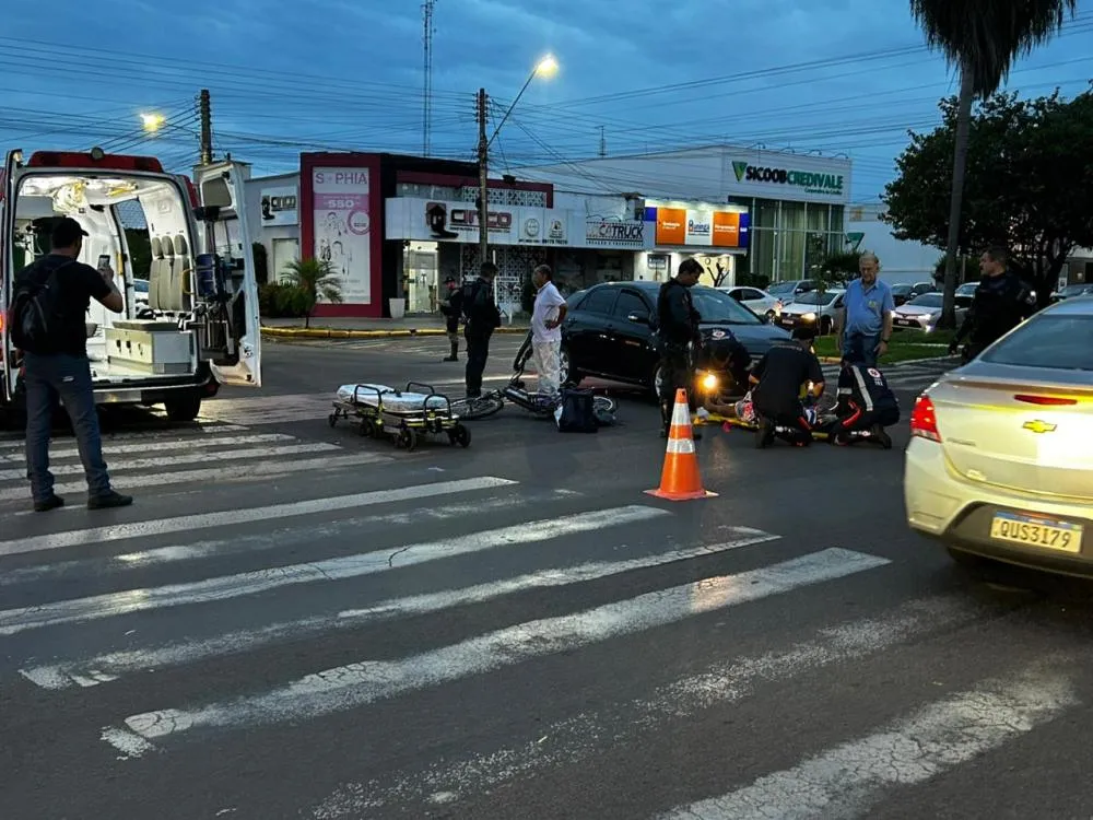 Uma mulher de 34 anos ficou ferida no fim da tarde desta segunda-feira (13), após uma colisão entre um carro e uma bicicleta elétrica, no cruzamento da Avenida Filinto Müller com a Rua Paranaíba, na região central de Três Lagoas (MS), um dos pontos mais movimentados da cidade.