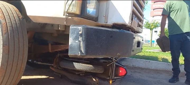 De acordo com informações da Polícia Militar, a ocorrência foi atendida após acionamento via COPOM (190), por volta das 14h. No local, foi constatada uma colisão frontal envolvendo um caminhão Scania/T112H e uma motocicleta Honda/CG 160 Fan, no pátio de um posto de combustíveis.