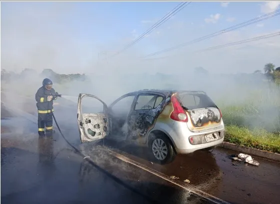 Os militares realizaram o combate ao incêndio, porém o veículo foi completamente consumido pelas chamas. As causas do fogo não foram informadas.