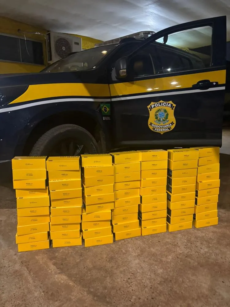A Polícia Rodoviária Federal apreendeu 70 aparelhos celulares na quinta-feira (23), durante fiscalização na BR-262, no município de Água Clara.