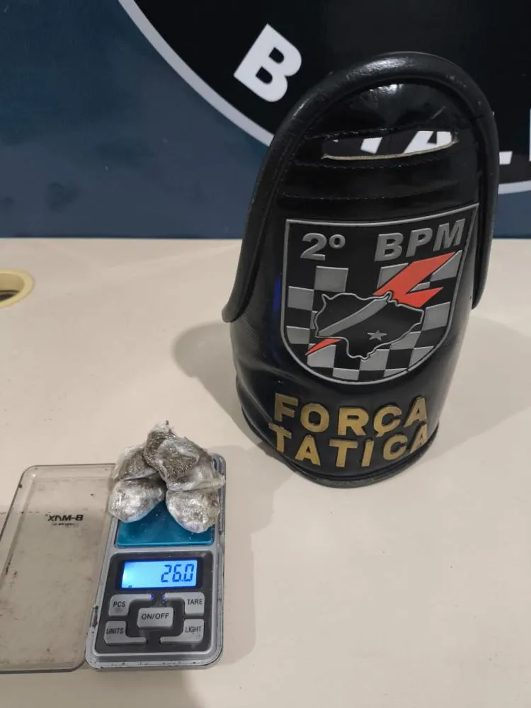 A ocorrência foi registrada por volta das 17h40, no Residencial Novo Oeste. Durante patrulhamento no Condomínio Ema, os policiais avistaram um ciclista em frente a um bar conhecido pela recorrência de denúncias relacionadas ao tráfico de drogas. Ao notar a presença da viatura, o suspeito tentou fugir, mas acabou sendo alcançado.