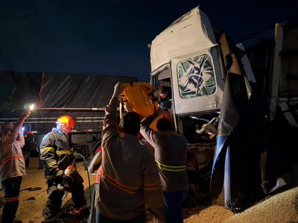 Uma terceira carreta, transportando madeira, também se envolveu na colisão ao atingir levemente o caminhão estacionado, mas o motorista dessa última não sofreu ferimentos significativos. Equipes de resgate trabalharam por cerca de três horas para retirar o motorista preso às ferragens e houve necessidade de apoio da Polícia Militar Rodoviária e guincho para a remoção dos veículos e limpeza da pista. A rodovia permanecia totalmente interditada nos dois sentidos até a manhã desta segunda-feira.
