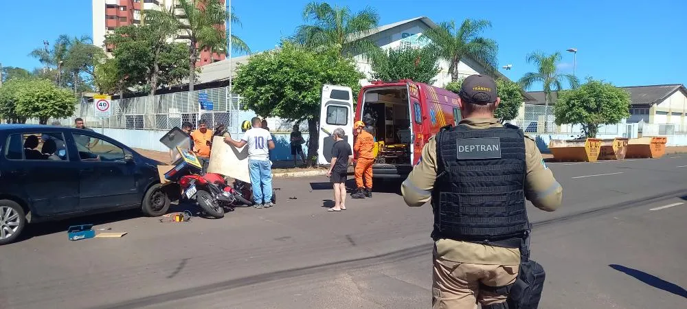 O motociclista foi socorrido pelo Corpo de Bombeiros e encaminhado para a UPA. Já o Deptran organizou o trânsito no local, enquanto a Polícia Militar realizou o registro da ocorrência.