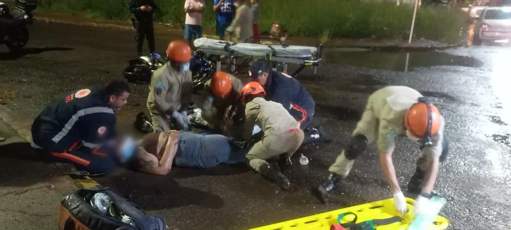 Carro invade avenida bate em moto e deixa mulher ferida